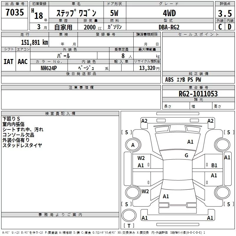 Honda STEP WAGON с аукциона Японии TAA Tohoku лот № 7035
