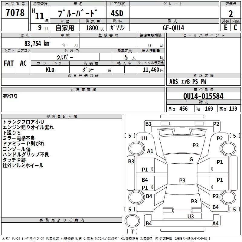 Nissan BLUEBIRD с аукциона Японии TAA Tohoku лот № 7078