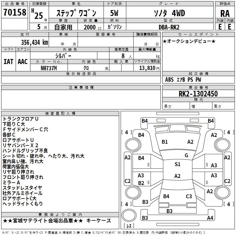 Honda STEP WAGON с аукциона Японии TAA Tohoku лот № 70158