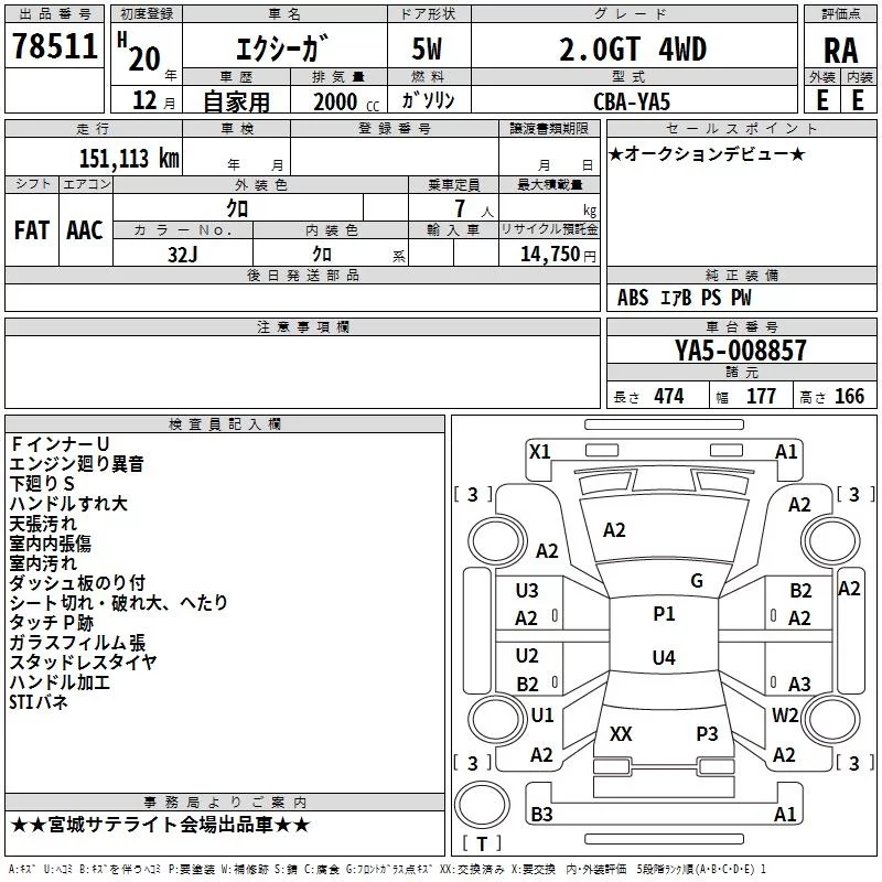 Subaru EXIGA с аукциона Японии TAA Tohoku лот № 78511