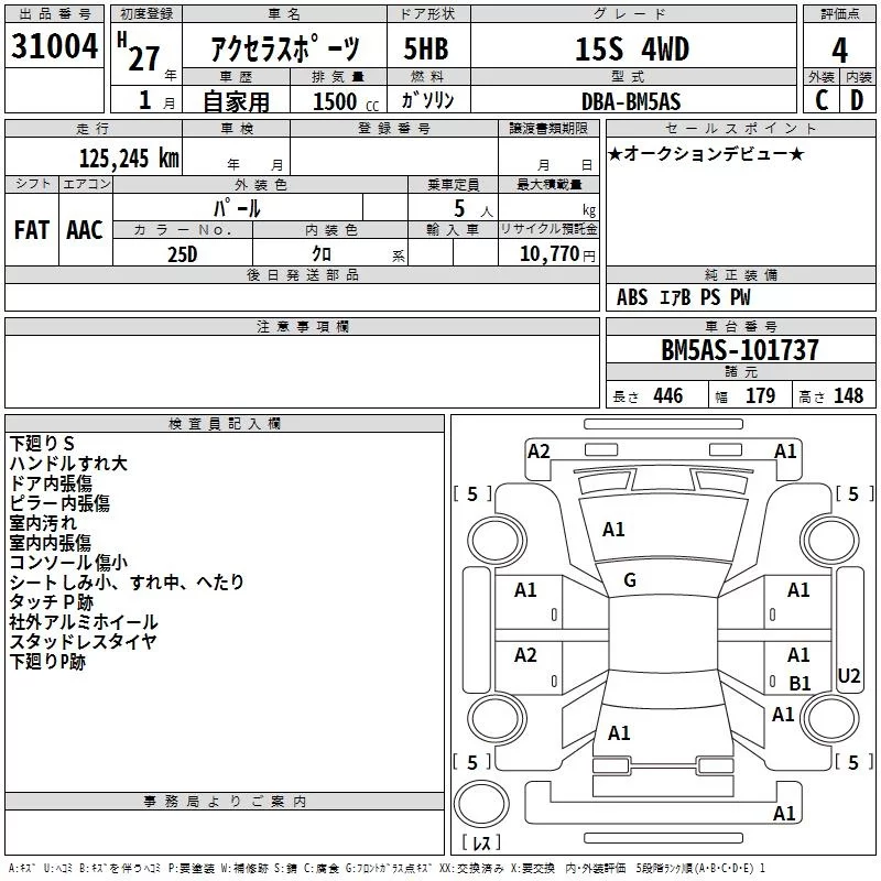 Mazda AXELA с аукциона Японии TAA Tohoku лот № 31004