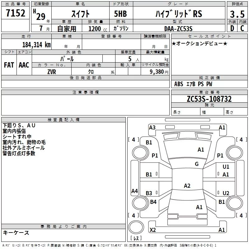 Suzuki SWIFT с аукциона Японии TAA Tohoku лот № 7152