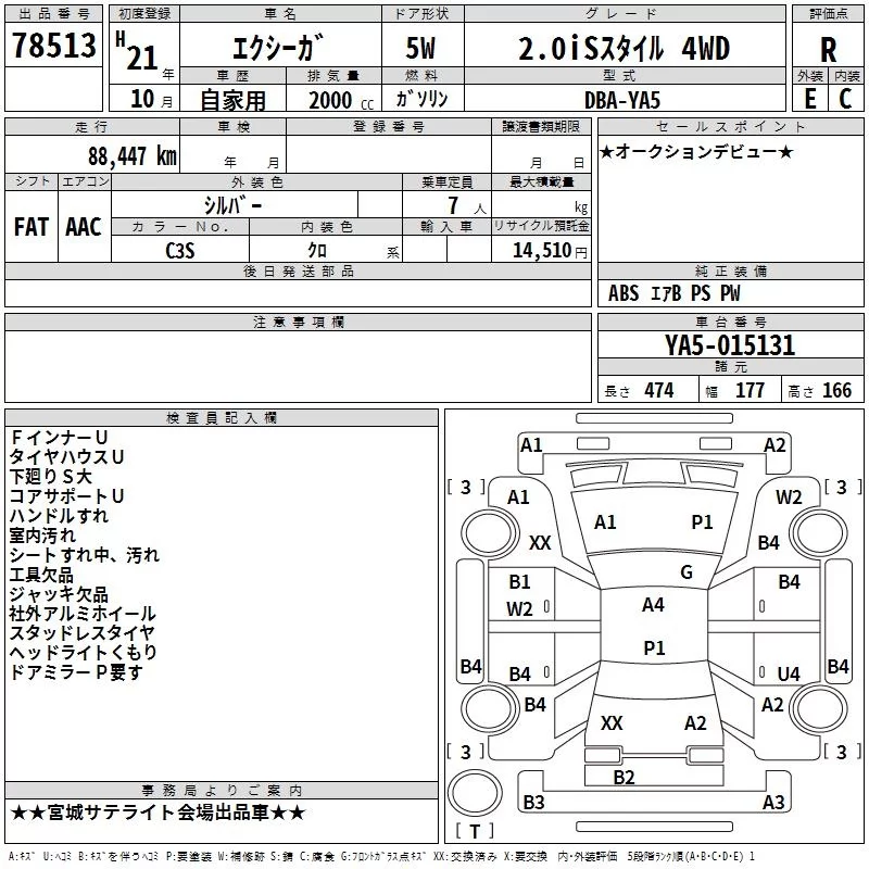 Subaru EXIGA с аукциона Японии TAA Tohoku лот № 78513