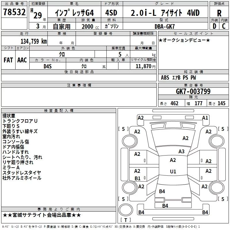 Subaru IMPREZA G4 с аукциона Японии TAA Tohoku лот № 78532