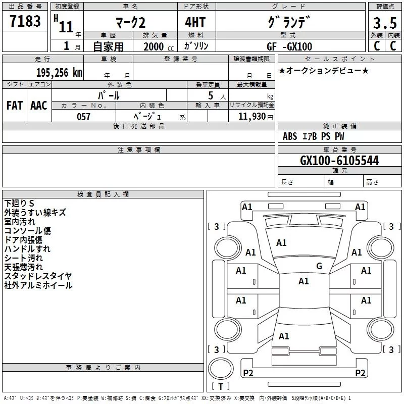 Toyota MARK II с аукциона Японии TAA Tohoku лот № 7183
