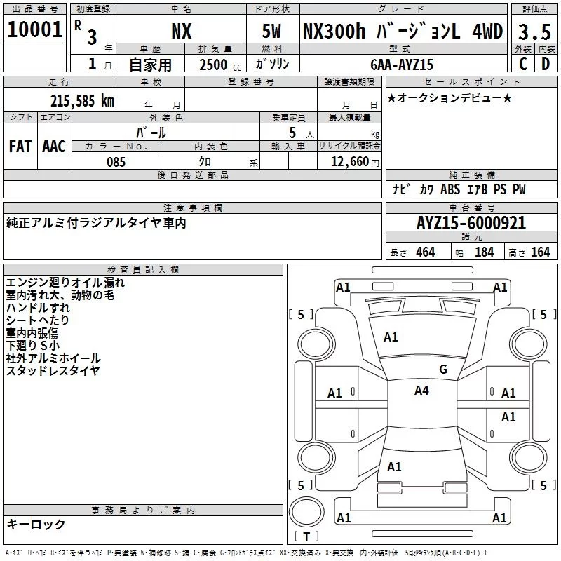 Lexus NX с аукциона Японии TAA Tohoku лот № 10001