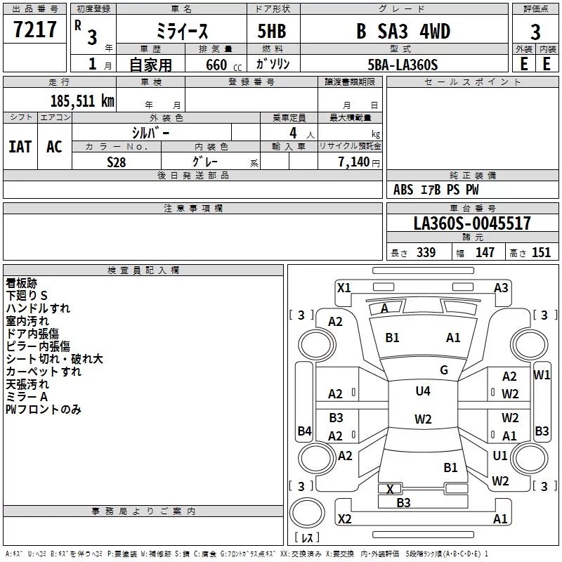 Daihatsu MIRA E S с аукциона Японии TAA Tohoku лот № 7217