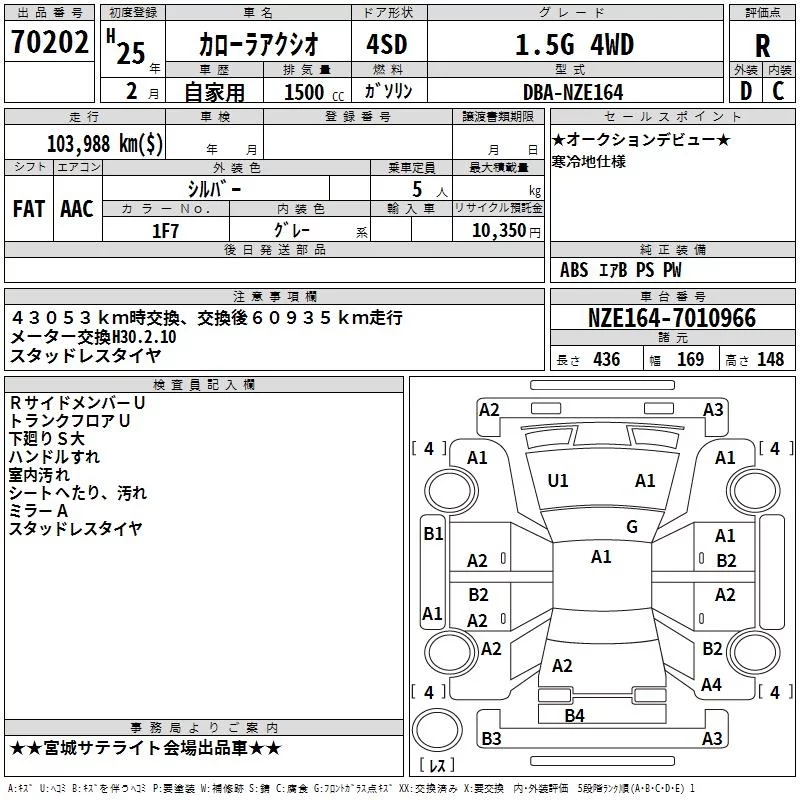Toyota COROLLA AXIO с аукциона Японии TAA Tohoku лот № 70202