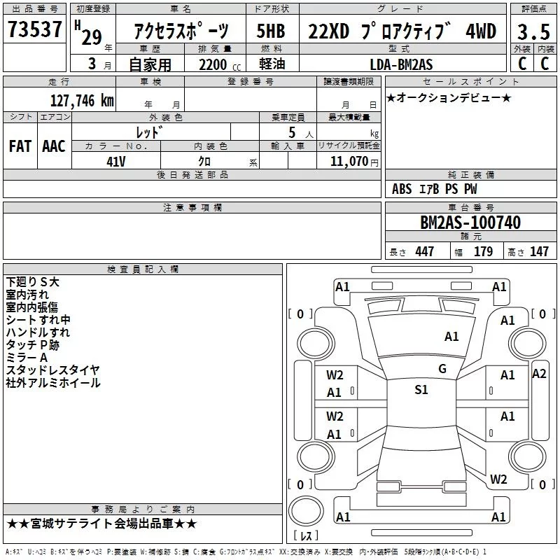Mazda AXELA с аукциона Японии TAA Tohoku лот № 73537