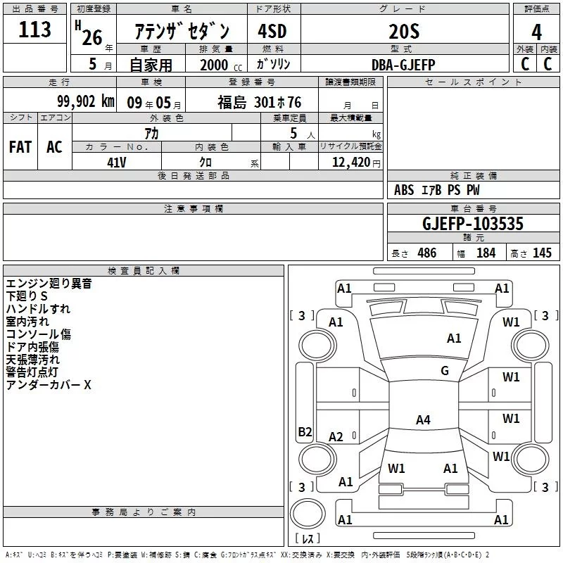Mazda ATENZA SEDAN с аукциона Японии TAA Tohoku лот № 113