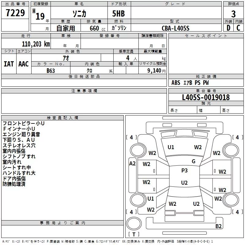 Daihatsu SONICA с аукциона Японии TAA Tohoku лот № 7229