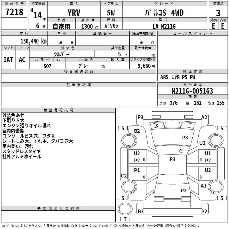 Daihatsu YRV с аукциона Японии TAA Tohoku лот № 7218