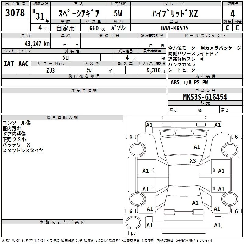 Suzuki SPACIA GEAR с аукциона Японии TAA Tohoku лот № 3078