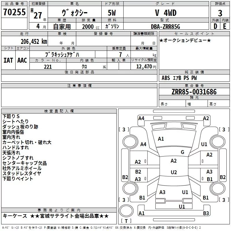 Toyota VOXY с аукциона Японии TAA Tohoku лот № 70255