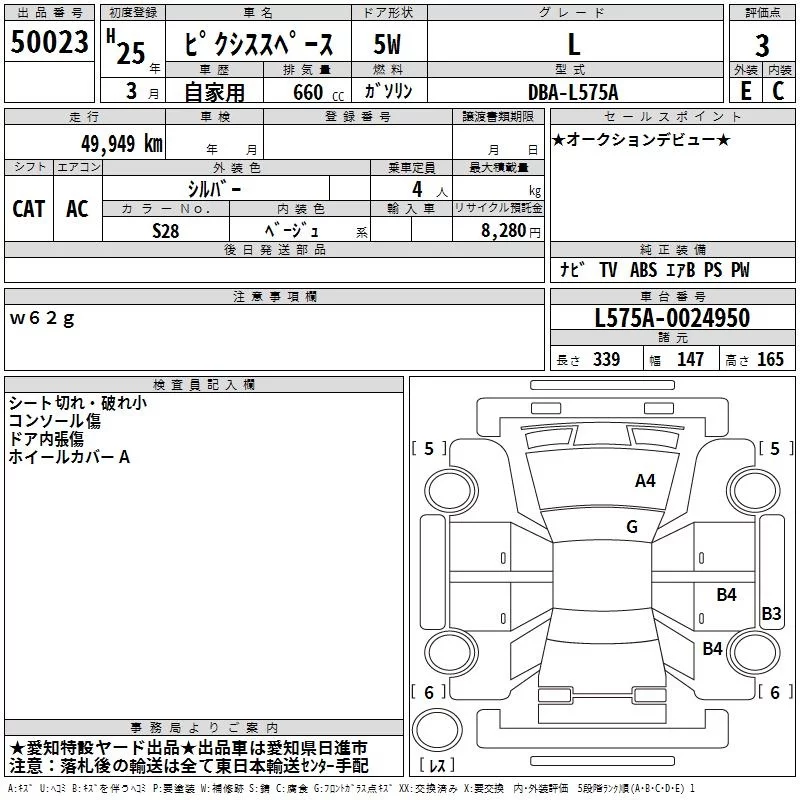 Toyota PIXIS SPACE с аукциона Японии TAA Chubu лот № 50023