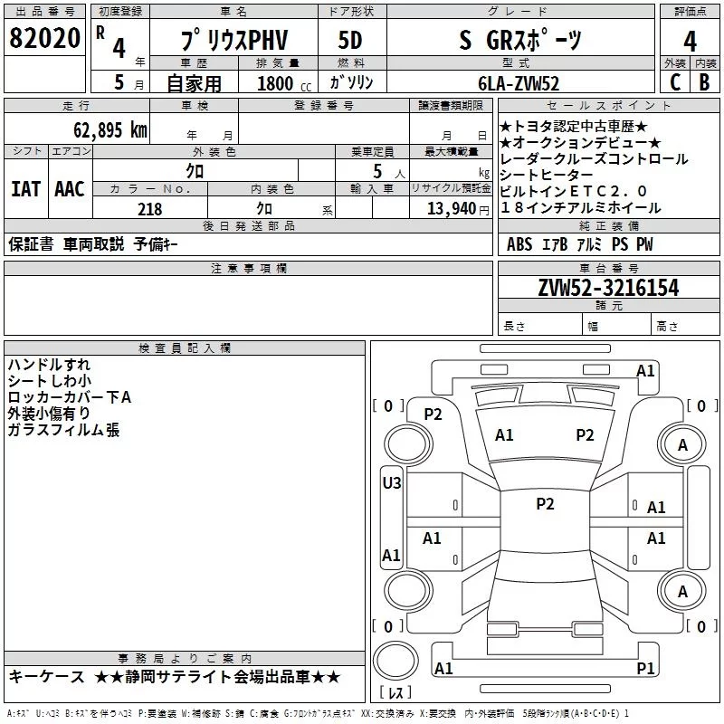 Toyota PRIUS PHV с аукциона Японии TAA Chubu лот № 82020