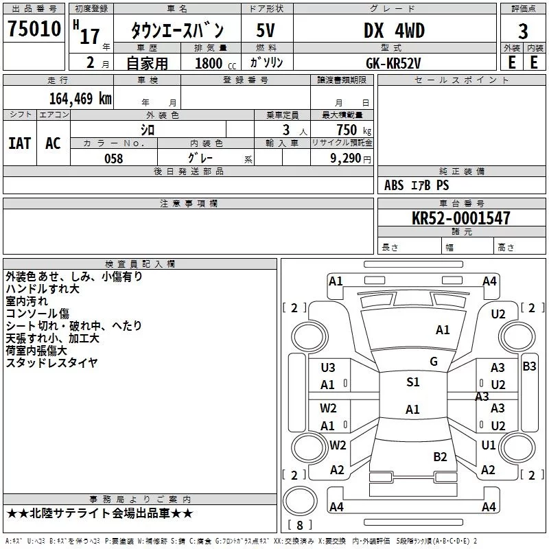 Toyota TOWN ACE VAN с аукциона Японии TAA Chubu лот № 75010