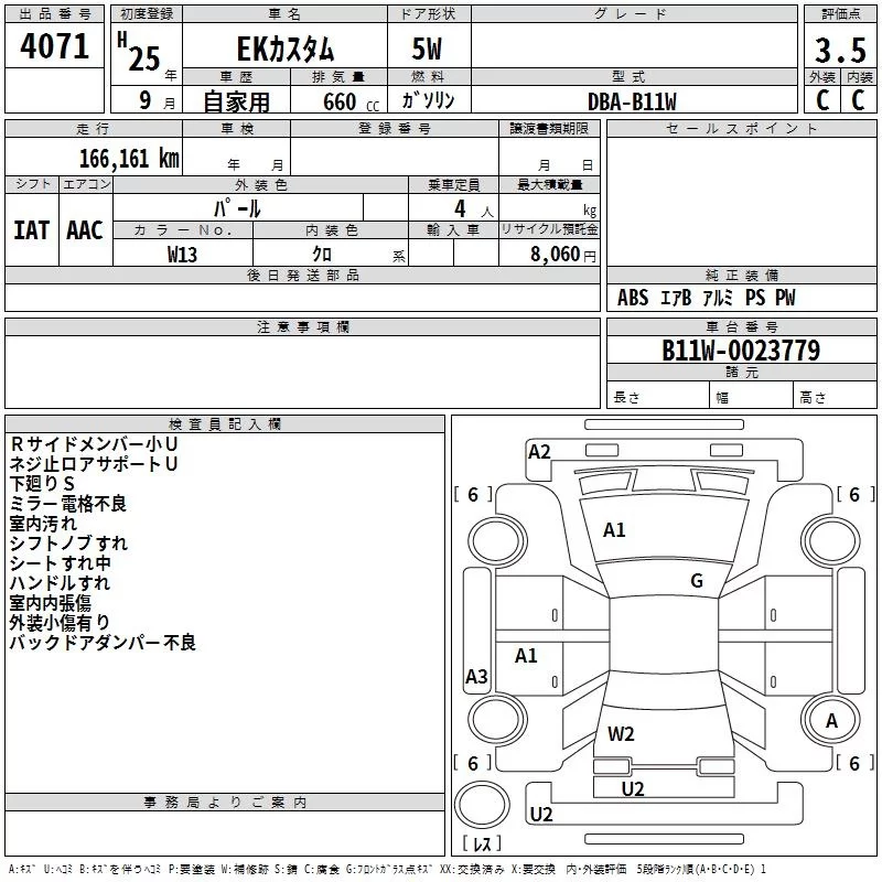 Mitsubishi EK CUSTOM с аукциона Японии TAA Chubu лот № 4071