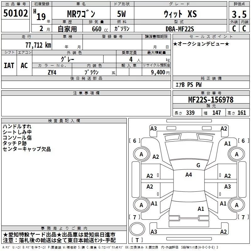 Suzuki MRWAGON с аукциона Японии TAA Chubu лот № 50102