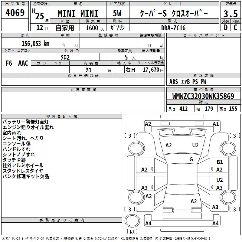 BMW MINI с аукциона Японии TAA Chubu лот № 4069