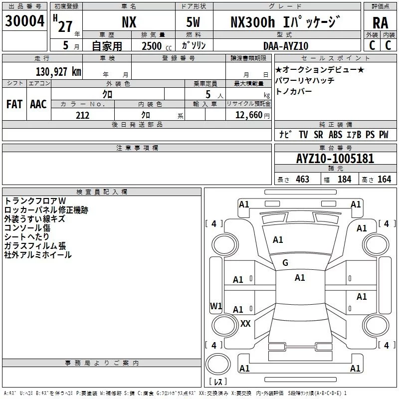 Lexus NX с аукциона Японии TAA Chubu лот № 30004