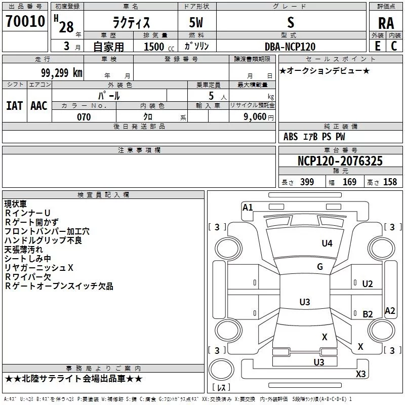 Toyota RACTIS с аукциона Японии TAA Chubu лот № 70010