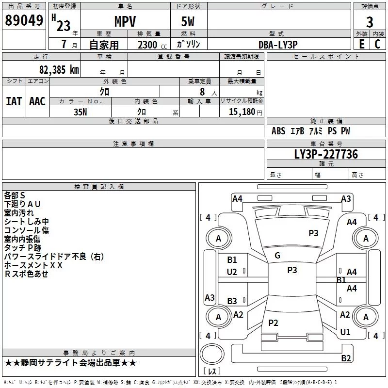 Mazda MPV с аукциона Японии TAA Chubu лот № 89049