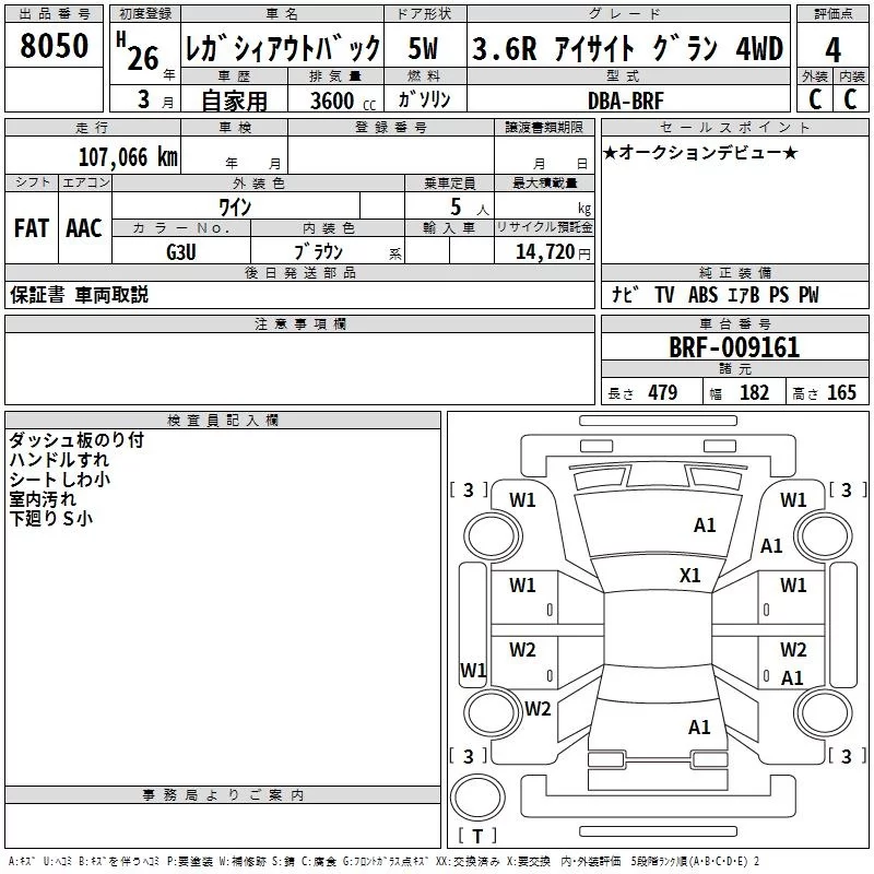 Subaru LEGACY OUTBACK с аукциона Японии TAA Chubu лот № 8050