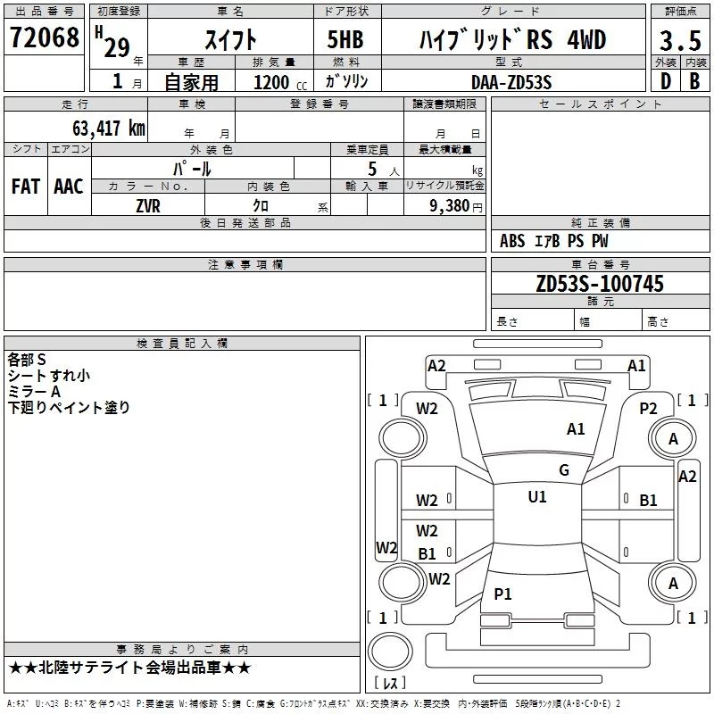 Suzuki SWIFT с аукциона Японии TAA Chubu лот № 72068