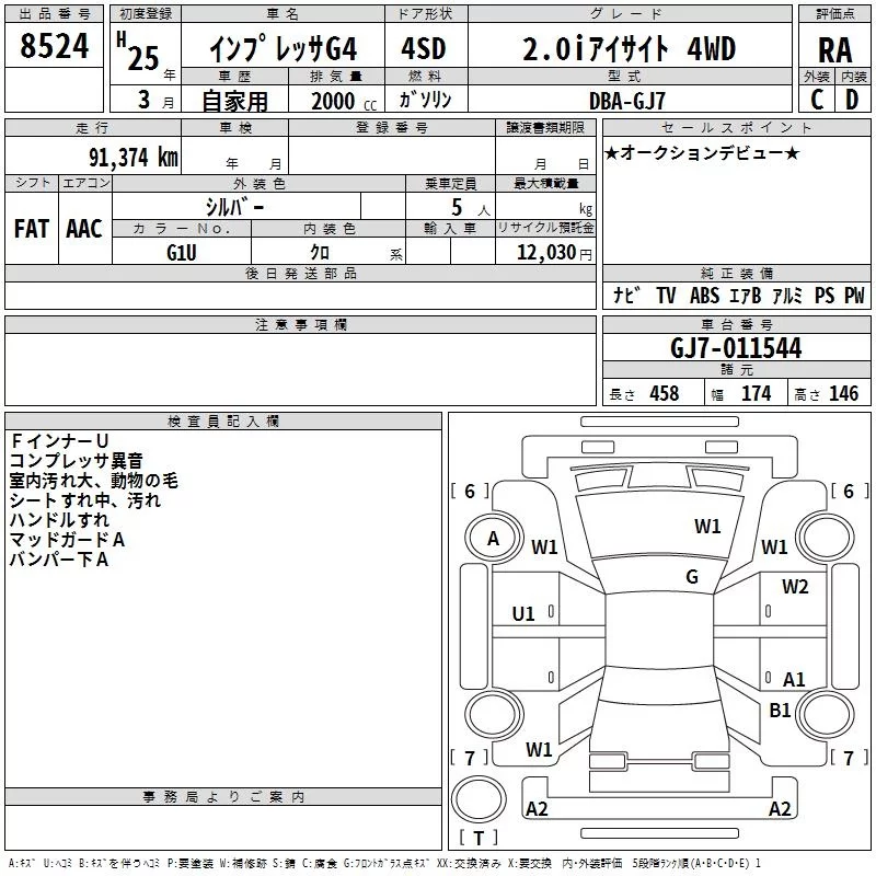 Subaru IMPREZA G4 с аукциона Японии TAA Chubu лот № 8524