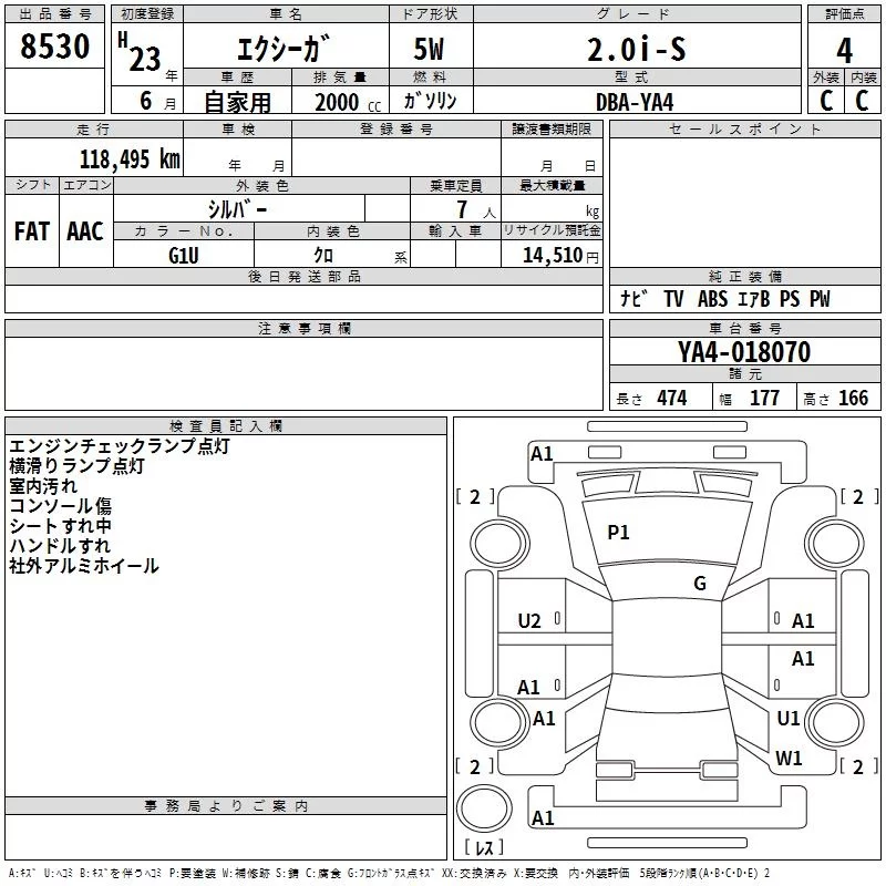 Subaru EXIGA с аукциона Японии TAA Chubu лот № 8530