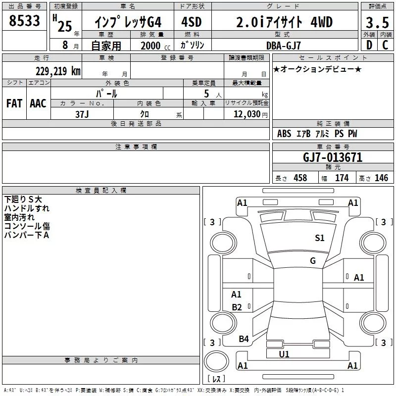 Subaru IMPREZA G4 с аукциона Японии TAA Chubu лот № 8533