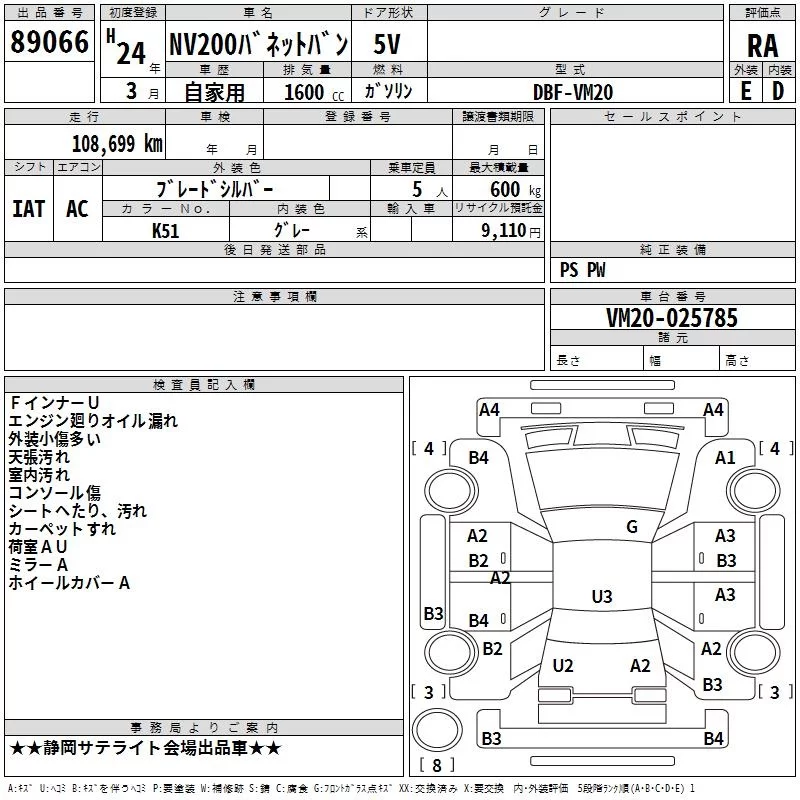 Nissan NV200 с аукциона Японии TAA Chubu лот № 89066