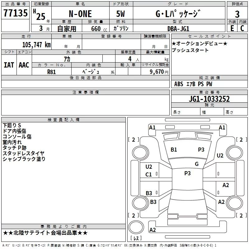 Honda N ONE с аукциона Японии TAA Chubu лот № 77135