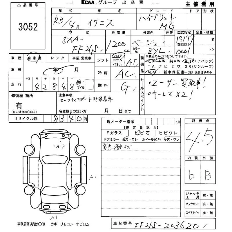 Suzuki IGNIS с аукциона Японии KCAA Fukuoka лот № 3052