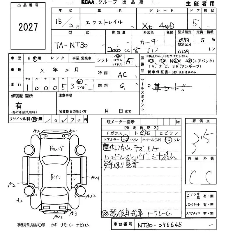 Nissan X-TRAIL с аукциона Японии KCAA Fukuoka лот № 2027