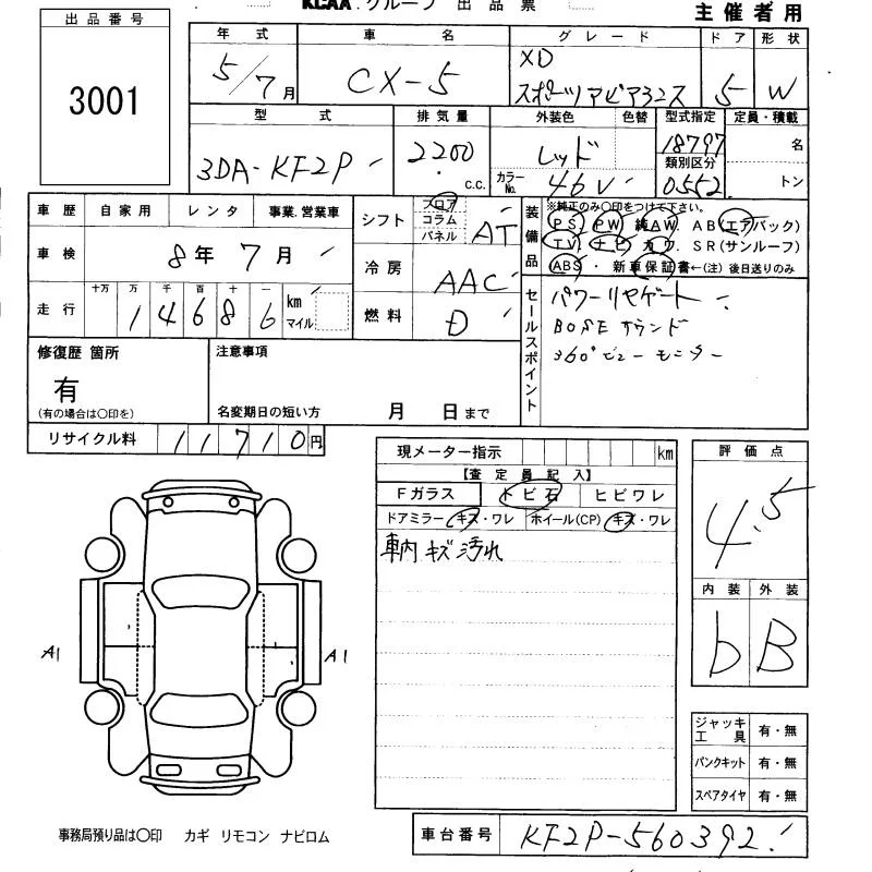 Mazda CX-5 с аукциона Японии KCAA Fukuoka лот № 3001