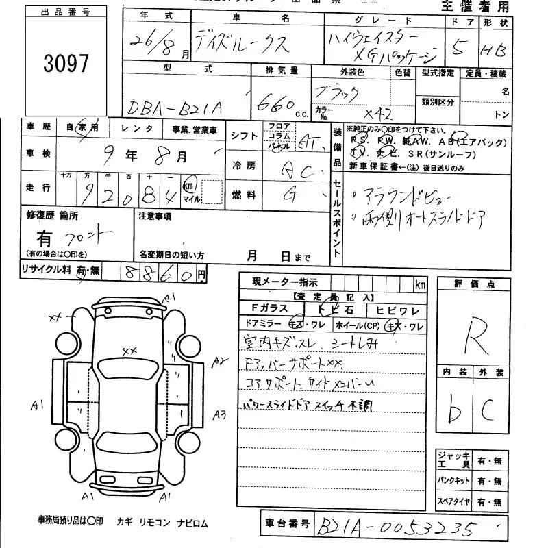 Nissan DAYZ ROOX с аукциона Японии KCAA Fukuoka лот № 3097