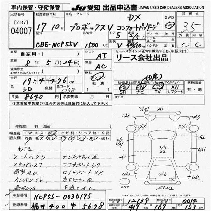 Toyota PROBOX с аукциона Японии JU Aichi лот № 4007