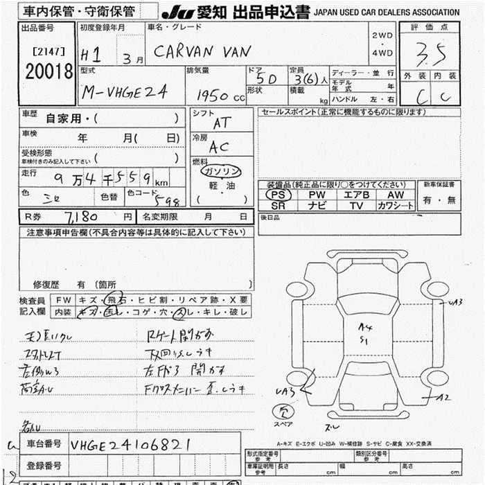 Nissan CARAVAN VAN с аукциона Японии JU Aichi лот № 20018