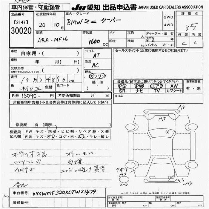 BMW MINI с аукциона Японии JU Aichi лот № 30020