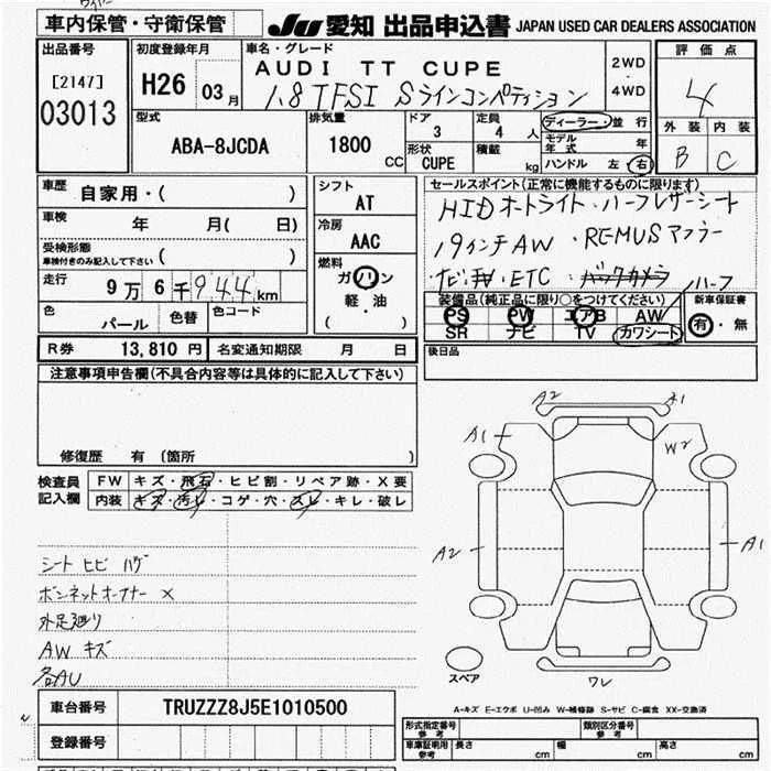 Audi TT с аукциона Японии JU Aichi лот № 3013