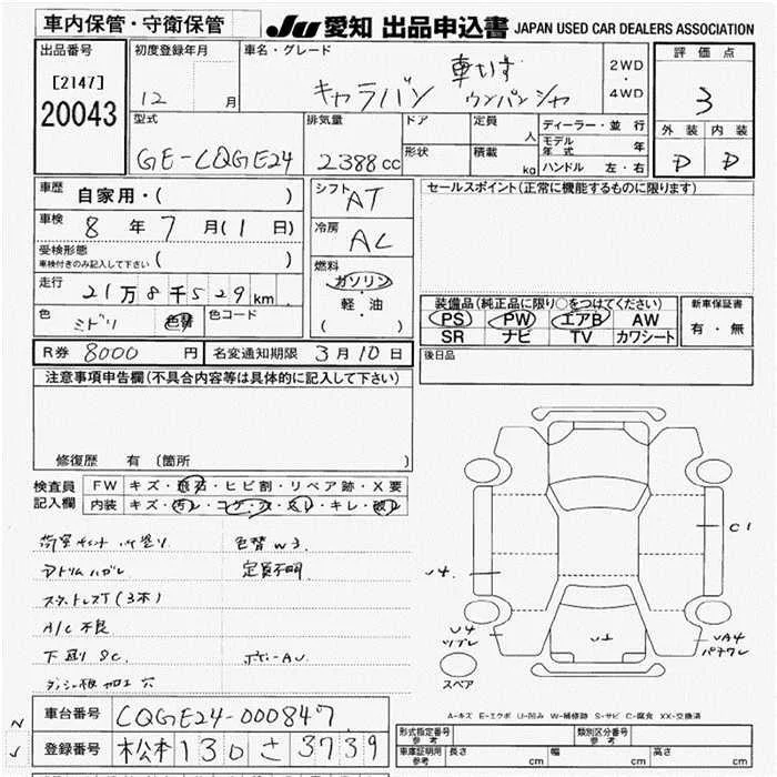 Nissan CARAVAN VAN с аукциона Японии JU Aichi лот № 20043