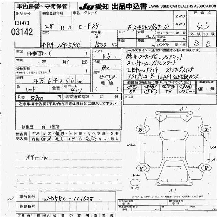 Mazda ROADSTER с аукциона Японии JU Aichi лот № 3142