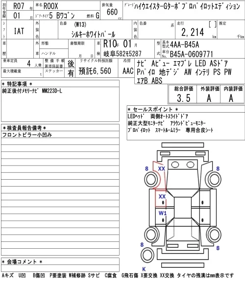 Nissan ROOX с аукциона Японии NAA Nagoya лот № 3009