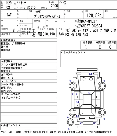 Nissan SERENA с аукциона Японии NAA Nagoya лот № 8008