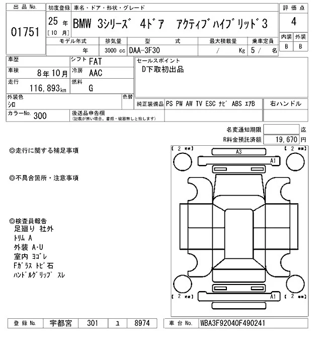 BMW 3-Series с аукциона Японии ARAI Oyama лот № 1751