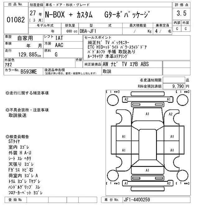 Honda N BOX PLUS с аукциона Японии ARAI Oyama лот № 1082