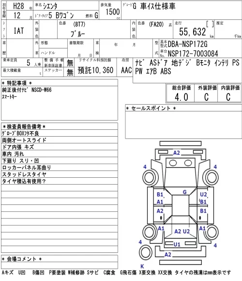 Toyota SIENTA с аукциона Японии NAA Osaka лот № 26