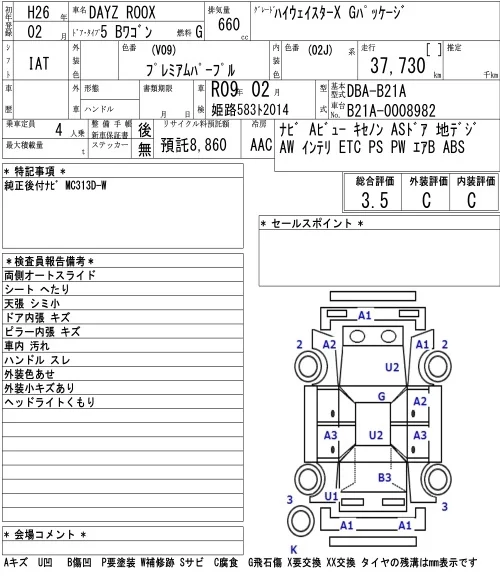 Nissan DAYZ ROOX с аукциона Японии NAA Osaka лот № 3008